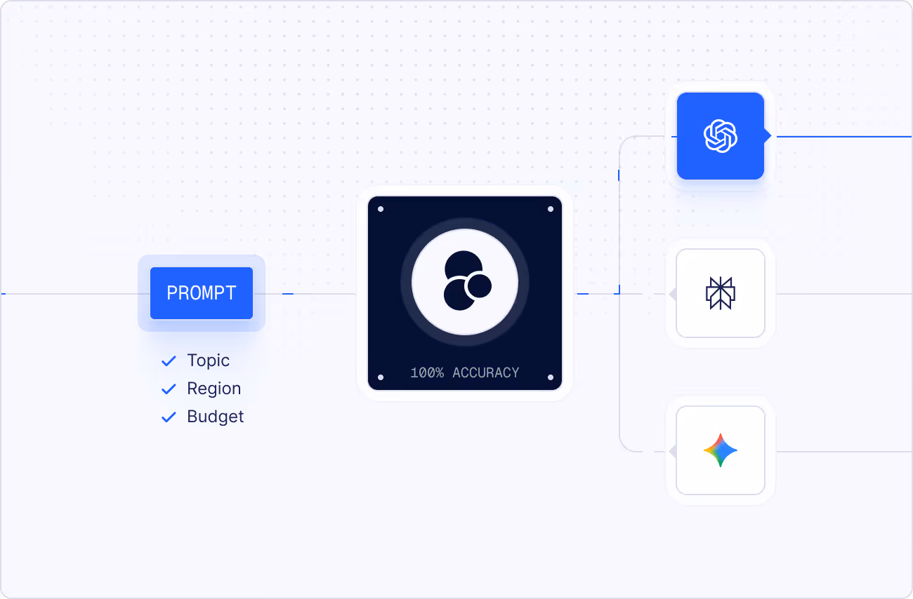 Select models according to cost, latency, or execution region. Optimize usage while keeping full control as traffic and complexity grow.