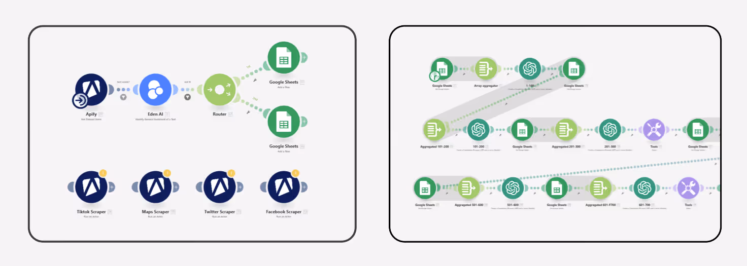Digipeak a créé un flux de travail automatisé d'analyse des sentiments de bout en bout à l'aide d'Eden AI, de Make.com et de Google Looker Studio.