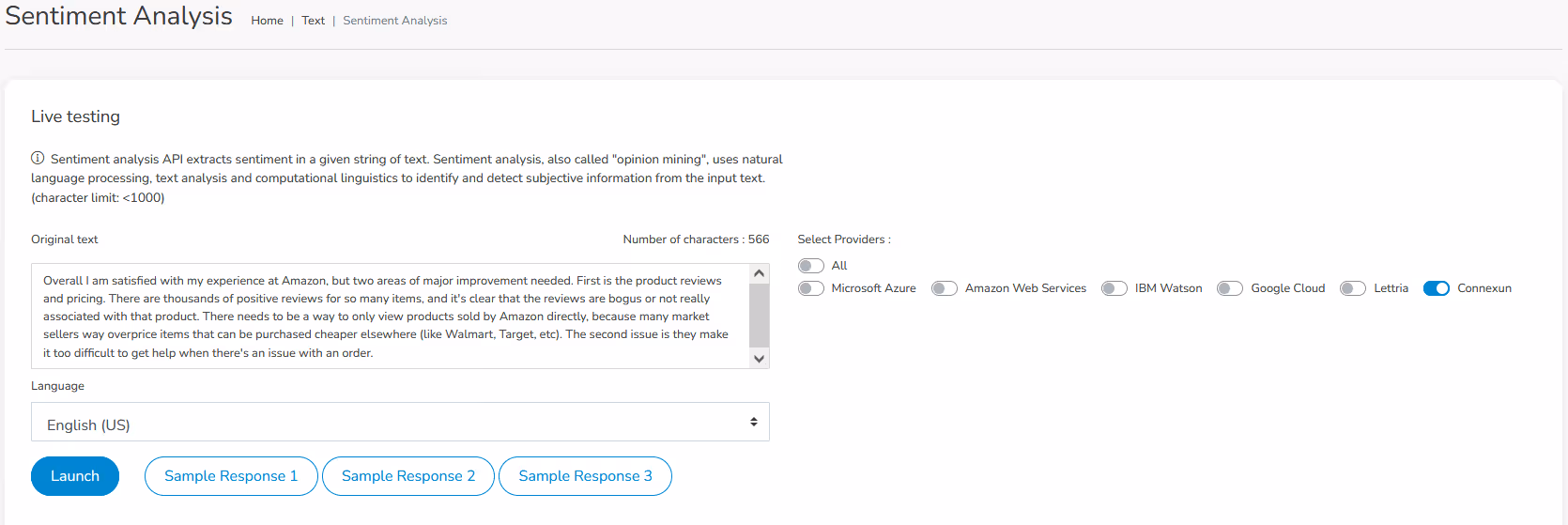 Nous sommes heureux d'annoncer que l'API d'analyse des sentiments et de synthèse de texte de Connexun a été intégrée à la plateforme et à l'API Eden AI.