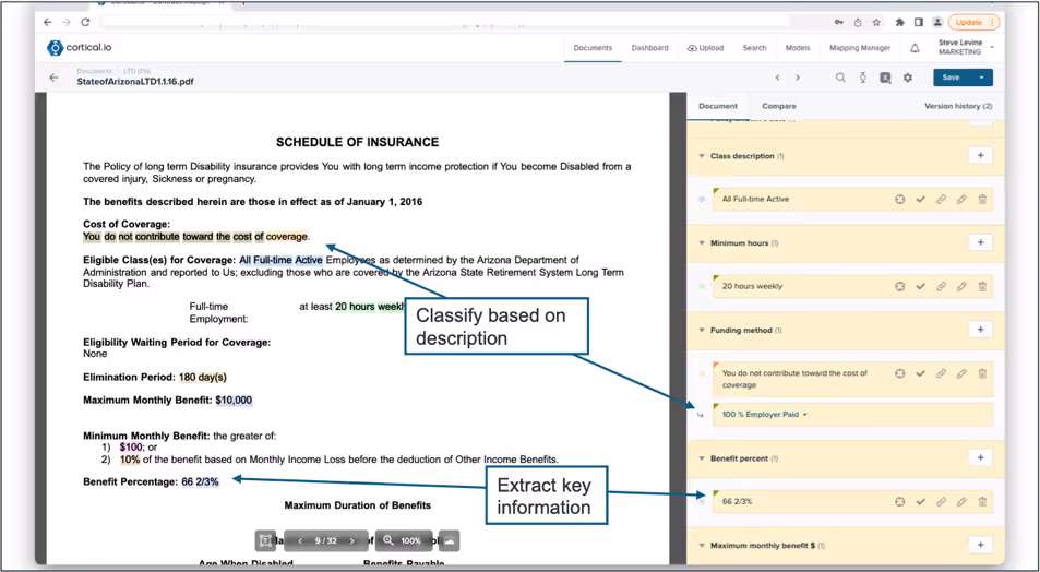 Cette solution est conçue pour interpréter le sens du texte même lorsque le libellé varie, ce qui la rend idéale pour rechercher, comparer, classer et analyser avec précision des données non structurées telles que des polices d'assurance, des documents juridiques et des contrats. L'approche de Cortical.io en matière de NLU et de NLP repose sur une technologie brevetée appelée Semantic Folding, reconnue pour son efficacité, son évolutivité et son faible impact environnemental.