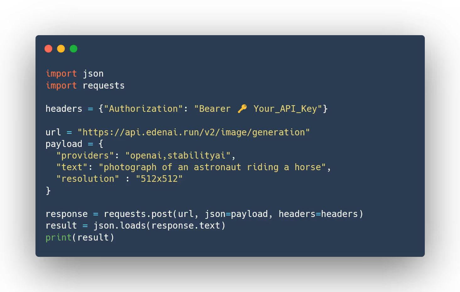 Une fois que vous aurez importé des packages sur Python et obtenu votre clé API, vous pourrez générer des images. Vous pouvez accéder à la liste des outils de génération d'images moteurs disponible sur Eden AI pour vous aider à choisir le fournisseur le mieux adapté à votre projet et à vos besoins.