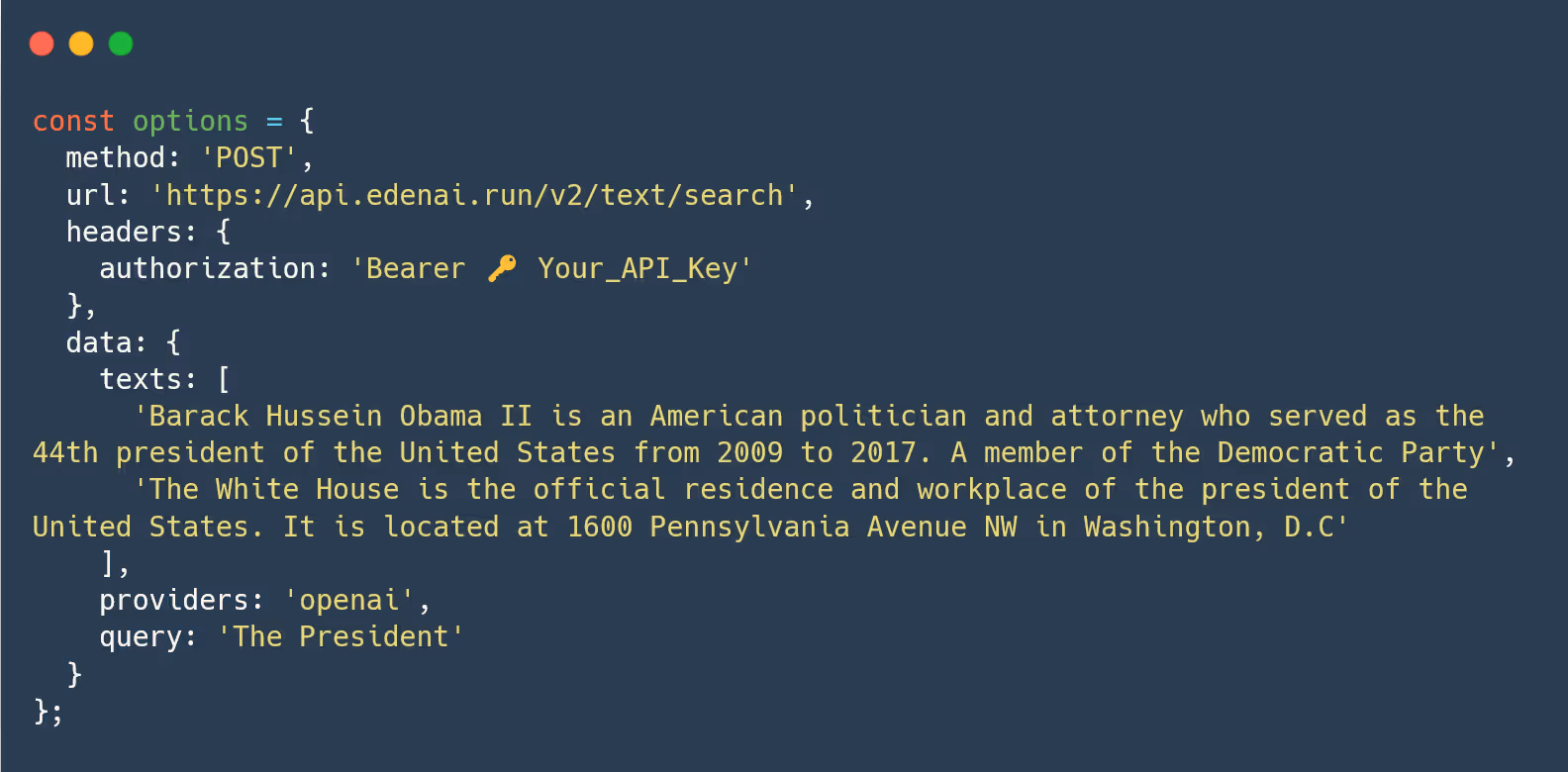 Dans ce tutoriel, vous allez apprendre à utiliser l'API de recherche sémantique en 5 minutes à l'aide de JavaScript. Eden AI fournit une API simple et conviviale pour les développeurs qui vous permet de rechercher des informations dans des textes.