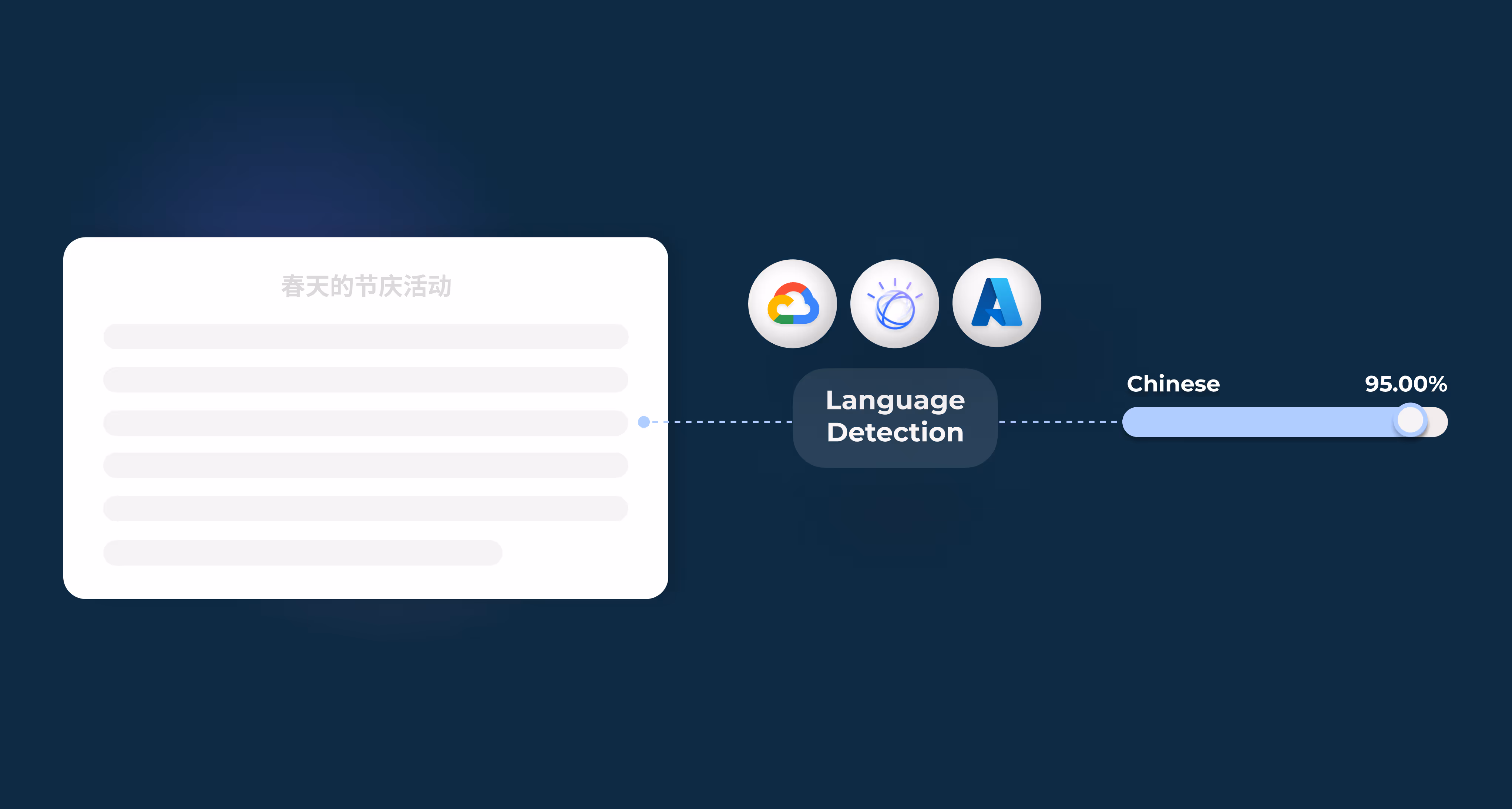 L'API de détection des langues d'Azure est incluse dans le cadre d'Azure Cognitive Service for Language. Il détecte avec précision la langue d'un document, y compris les dialectes et les différences régionales. Cette solution complète de traitement du langage est conçue pour les entreprises et comprend des fonctionnalités telles que l'analyse des sentiments, l'extraction de phrases clés et la reconnaissance d'entités. Toutes ces fonctionnalités sont alimentées par des technologies avancées d'IA et d'apprentissage automatique de pointe.