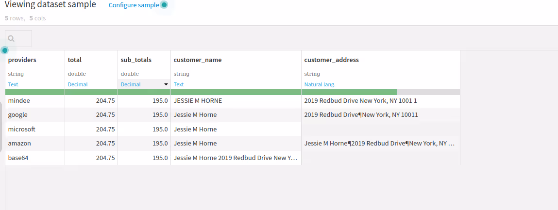 Once you have retrieved the data from the API, you’ll need to put the response in a Pandas dataframe. In this example, we chose to extract some basic information from the invoice, such as total, subtotal, customer name, and customer address: