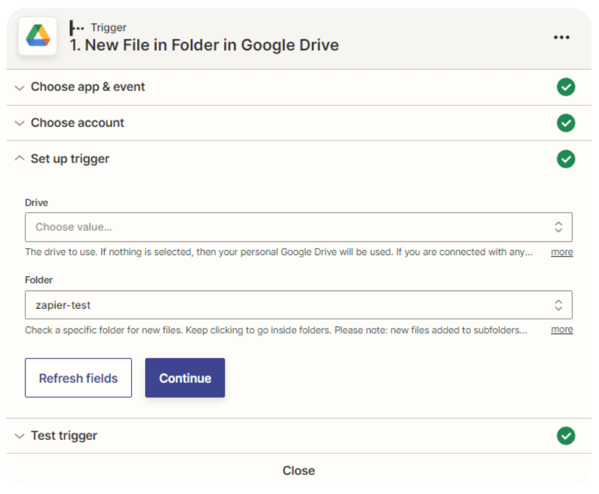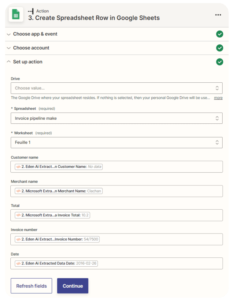 This step will allow you to get our invoice content to perform detection, for example, a trigger to get your invoice content from a Google Drive file.