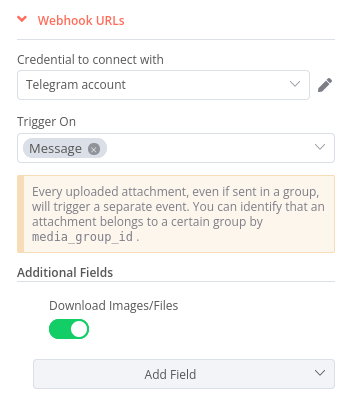 The Telegram trigger is nearly the same as in our first demo for invoice parsing but without the option to download files.