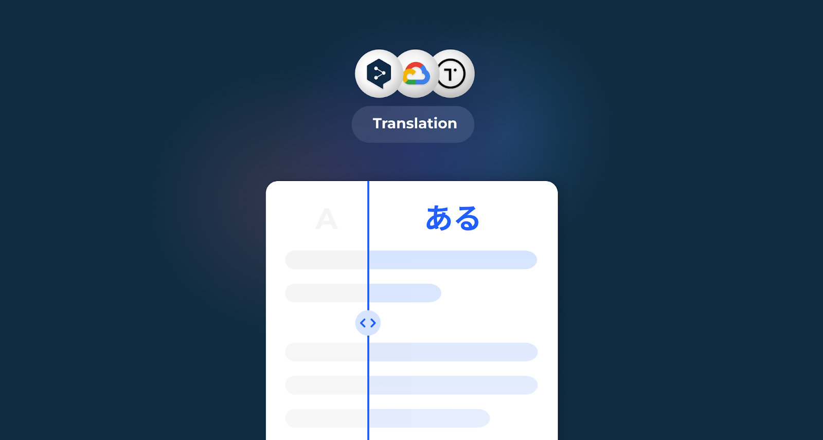 TranslaThor is a tool that allows you to automatically call and use the right translating provider (DeepL, Google, Amazon, IBM, Microsoft, ModernMT, Open AI, etc.).