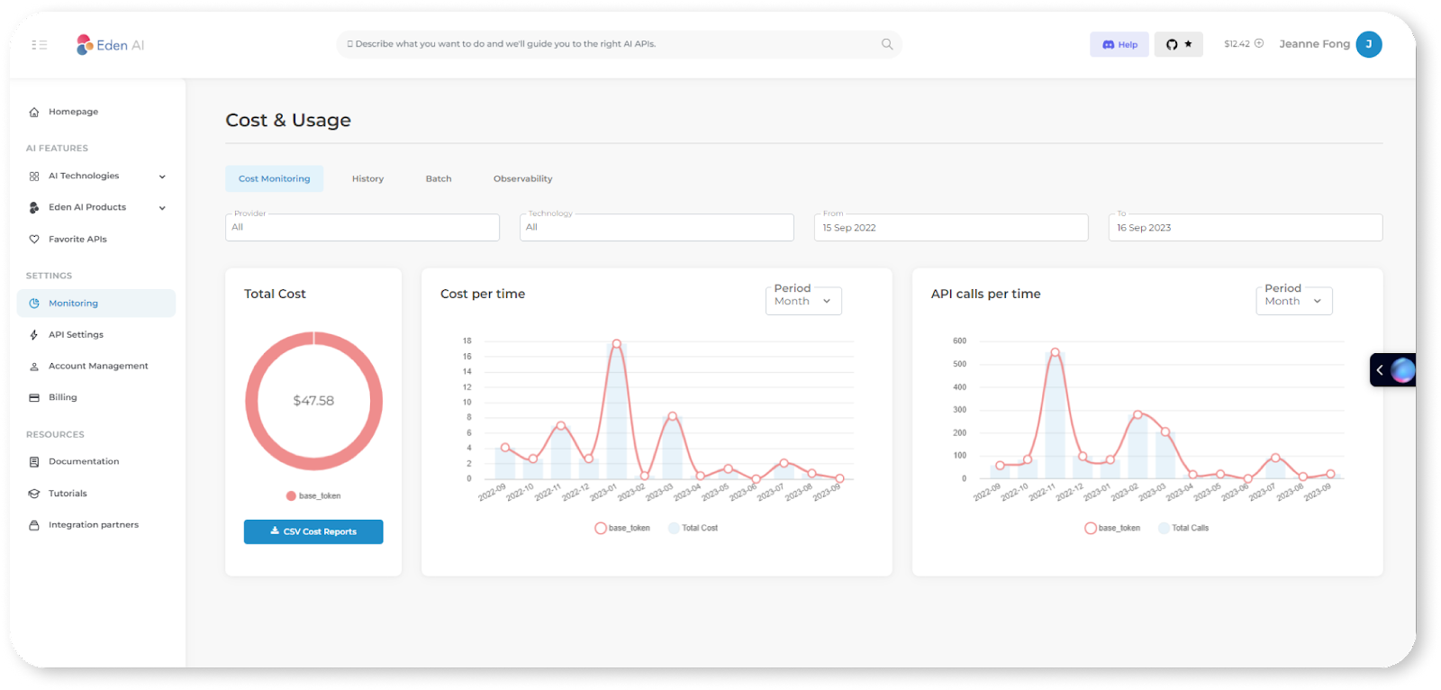 Eden AI doesn't stop at simplifying access to AI models; it also offers robust monitoring and cost management features.