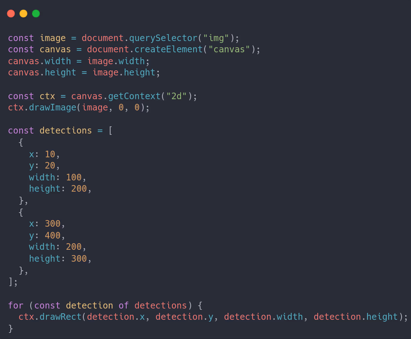 This tutorial offers a streamlined approach to integrating bounding boxes into images using JavaScript. You can do this by using the Canvas object's drawPoints() or drawRect() methods. These methods enable you to present the results of object detection or visually support other computer vision tasks.