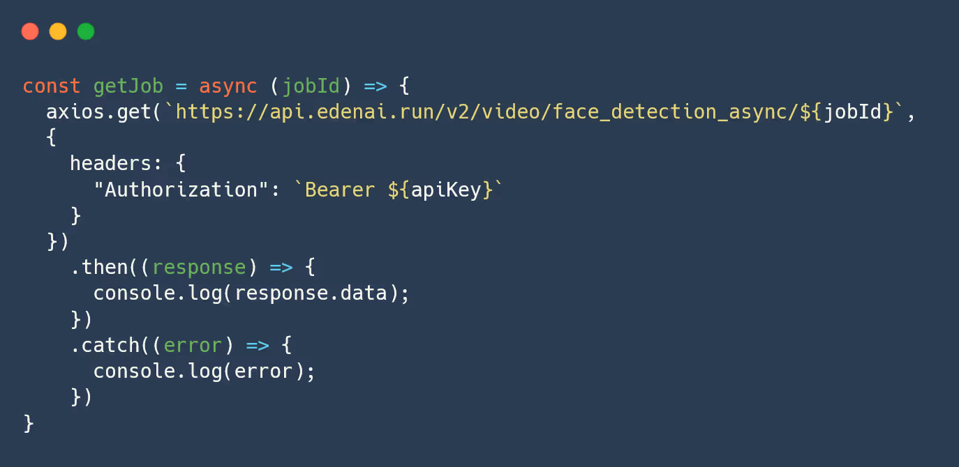 Finally, you have to create the getJob() function that will execute GET request with the Job ID of your POST request: