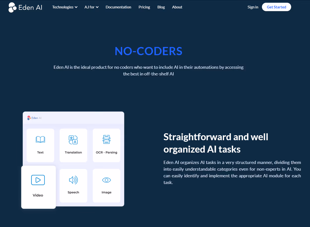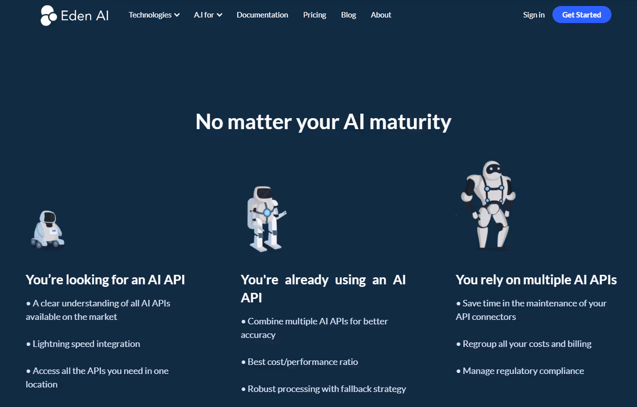 Eden AI is meant for multiple AI APIs use. It allows you to call multiple AI APIs and is the future of AI usage in companies.
